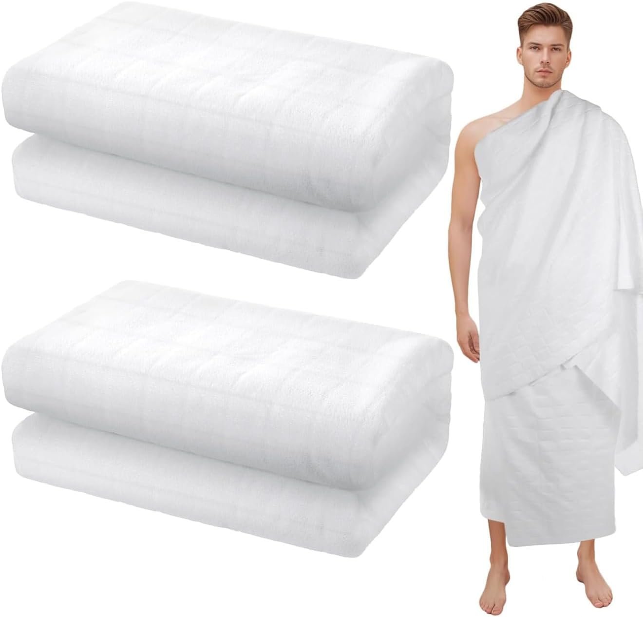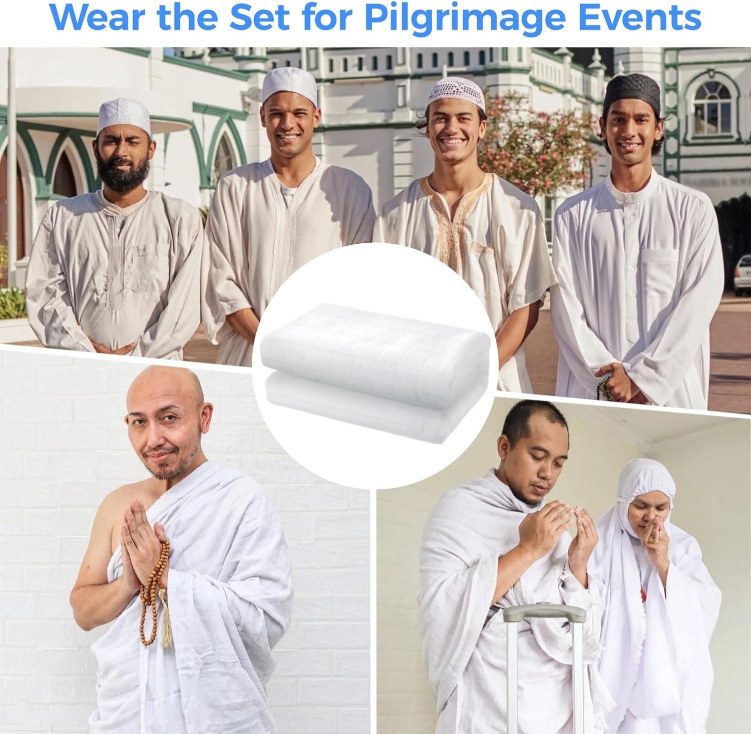 Ihram for Umrah Men, 2-Piece Ahram for Umrah Men for Daily Use Pilgrimages Cosplay, Traditional White Design, Breathable and Lightweight, Quick-Dry and Easy to Clean(43×86 Inch)